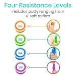 Unlock the power of rehabilitation with the VIVE RHB1009 Therapy Putty Set, designed for those seeking to enhance grip strength, dexterity, and relieve stress. This versatile set includes four distinct resistance levels—Extra Soft, Soft, Medium, and Firm—catering to various therapy needs. Each vibrant 3-ounce tub is crafted from odorless, non-toxic, and latex-free materials, ensuring a safe and pleasant experience for all ages. Ideal for physical therapy, hand rehabilitation, or simply as a stress-relief tool, this putty set empowers you to improve finger coordination and mobility at your own pace. Embrace a healthier, more flexible you with VIVE's expertly designed therapy putty.