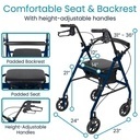 Empower your mobility with the VIVE Health Aluminum Lightweight Rollator, designed for active seniors seeking ease and independence. Weighing just 14 pounds, this sleek black rollator is your perfect companion for navigating life's adventures. Its robust aluminum frame supports up to 300 pounds, ensuring stability and confidence with every step. The 6-inch smooth-gliding wheels make maneuvering over various terrains a breeze, while the comfortable padded seat and backrest offer a cozy spot to rest. With height-adjustable handles, under-seat storage, and easy folding for compact storage, this rollator combines convenience with functionality. Whether you're strolling through the park or running errands, experience freedom and comfort like never before.