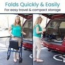 Empower your mobility with the VIVE Health Aluminum Lightweight Rollator, designed for active seniors seeking ease and independence. Weighing just 14 pounds, this sleek black rollator is your perfect companion for navigating life's adventures. Its robust aluminum frame supports up to 300 pounds, ensuring stability and confidence with every step. The 6-inch smooth-gliding wheels make maneuvering over various terrains a breeze, while the comfortable padded seat and backrest offer a cozy spot to rest. With height-adjustable handles, under-seat storage, and easy folding for compact storage, this rollator combines convenience with functionality. Whether you're strolling through the park or running errands, experience freedom and comfort like never before.